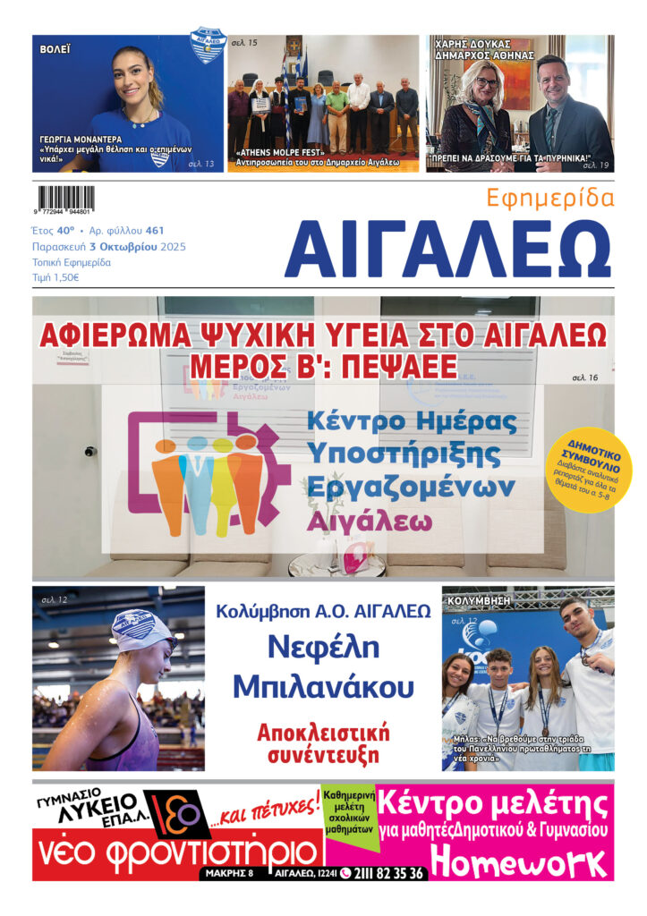 Σελ. 23 ΔΕΛΤΊΟ ΤΎΠΟΥ ΈΝΩΣΗ ΓΟΝΈΩΝ ΑΙΓΆΛΕΩ